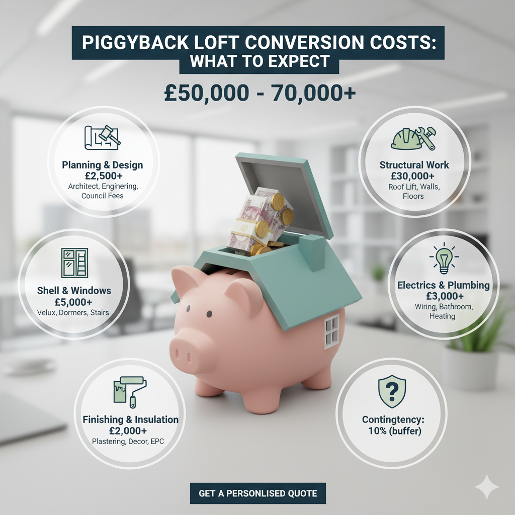 A piggyback loft conversion is a major home improvement and one of the most comprehensive options. In our service area, a project like this typically requires an investment of £50,000 to £70,000+.